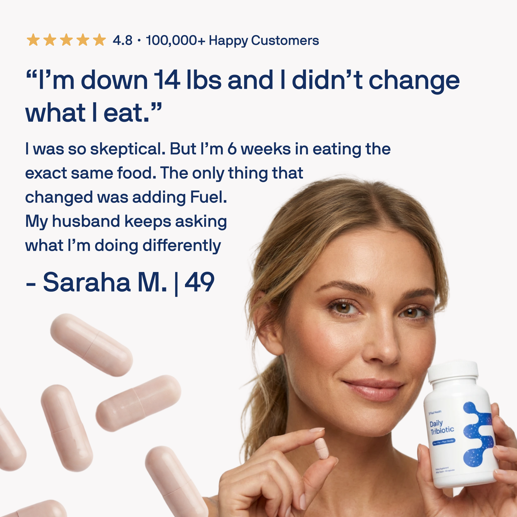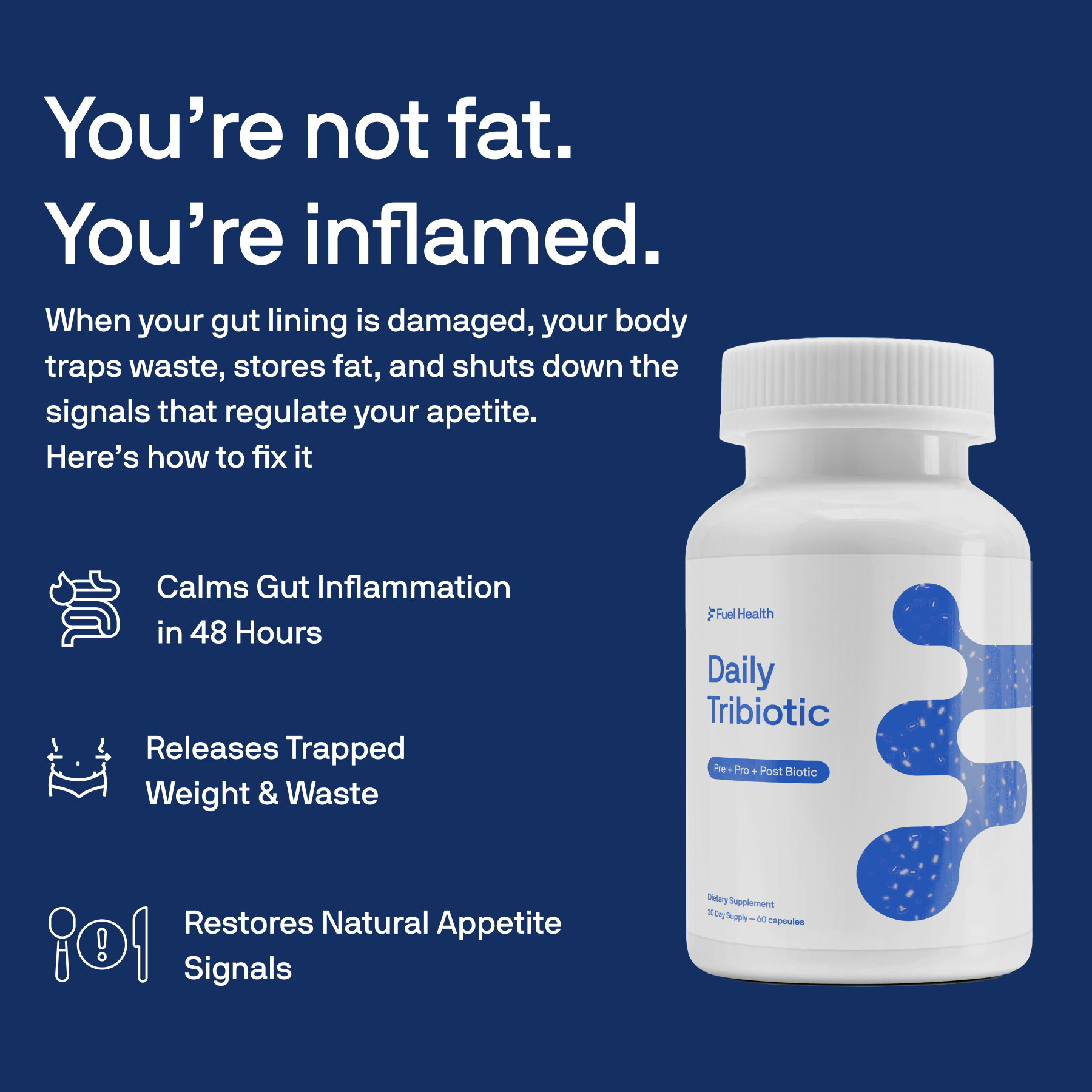 When your gut lining is damaged, inflammation triggers fat-storage signals, waste gets trapped, and your body's natural appetite regulation shuts down. By repairing the lining and restoring butyrate production, Daily TriBiotic addresses the gut dysfunction that makes weight loss feel impossible... even when you're doing everything right.